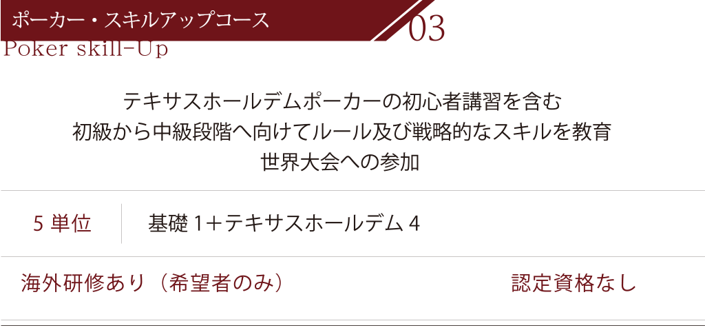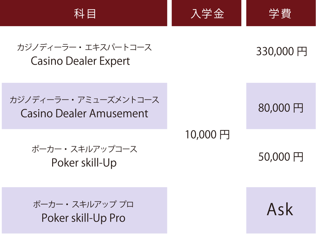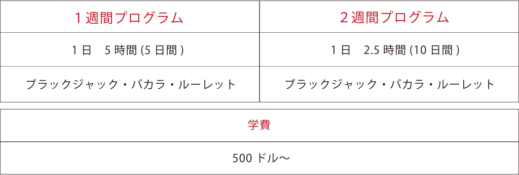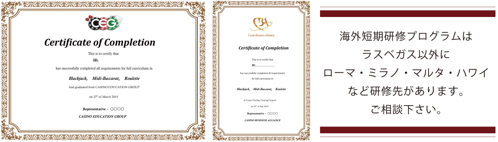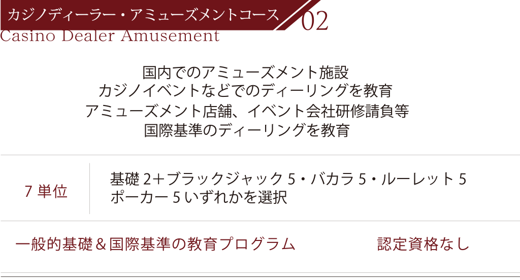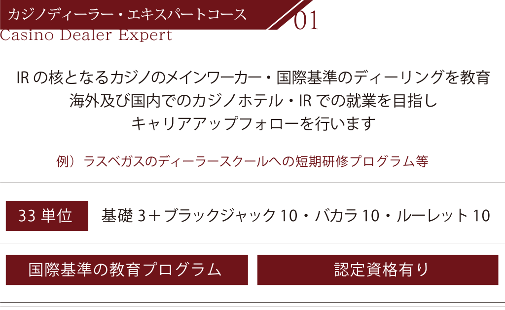 ※「カジノディーラー・エキスパートコース」のみ単位取得後に評価試験あり